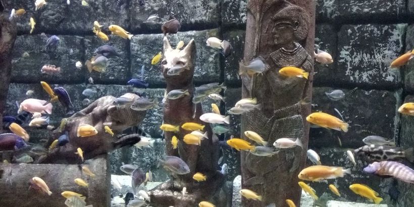 И оформление самих аквариумов шикарное, все со вкусом, в морском стиле. Тут и затонувшие корабли, и сокровища, и даже целые города.