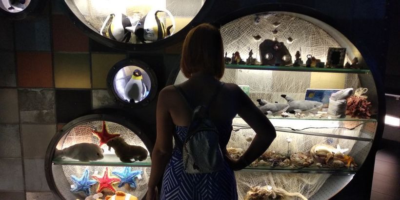 Я рыб больше люблю в кулинарной сфере, но посмотреть на них в естественной среде обитания тоже было интересно. В комплексе около 40 различных аквариумов, все красиво стилизированные (там самолет затонувший, там машина, якоря, корабли и т.д.), рыбки есть такие, что глаз не оторвать – полупрозрачные, светятся, переливаются. Некоторые смотрят вполне осознанным взглядом (тут я почти передумала их есть).