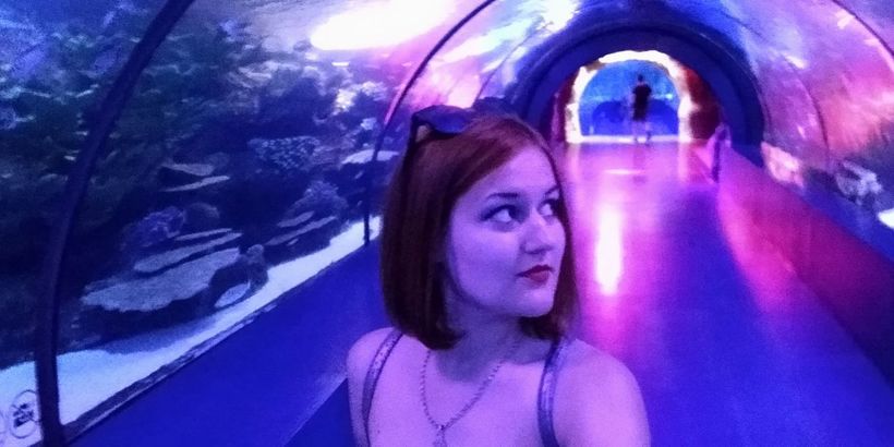 В общем, насмотревшись на эти аквариумы я начала уже разочаровываться. Хотелось чего-то грандиозно-масштабного. И вот под конец мы добрались до тоннельного аквариума. Ну вот тут уже веселее – какое-то ощущение погружения под воду, рыбок очень много, хочется пройтись медленно, насладиться моментом.