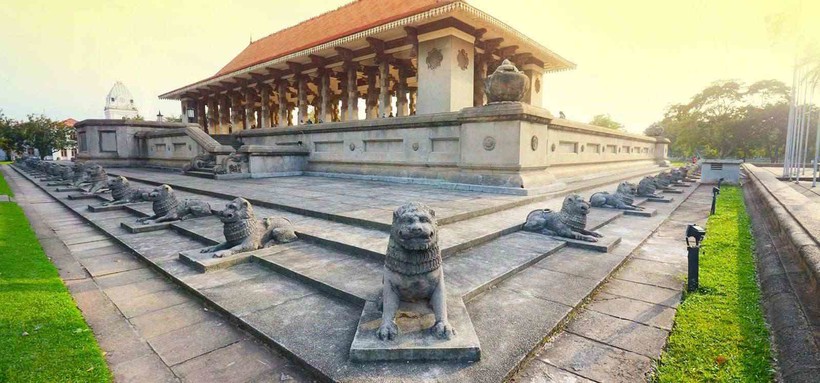 Когда я увидела Площадь независимости, то сразу заметила архитектурное совпадение Мемориала с Королевским залом для аудиенций, который находится рядом с Храмом Зуба Будды. Как рассказал мне муж, это не случайно. Если в Канди в 1815 году король подписал отказ от независимости, то в 1948 году в Коломбо наоборот стали доминионом Британской империи (а чуть позже в 1972 году и полностью обрели независимость). Если вы были в Канди, то сможете вспомнить это оформление в национальном стиле: колонны и скульптурные изображения львов.