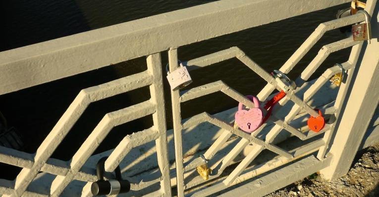 Почему же он назван в честь влюбленных? Наверняка, если не в каждом, то в большинстве городов есть такой мост, где парочки или молодожены вешают замки, чтобы их любовь была вечной и никогда не заканчивалась. Так вот, этот мост предназначен именно для этого. Причем молодожены, закрыв замок на ключ, выбрасывают последний в реку, чтобы уж точно никто не смог открыть заветный замочек. гуляя по мосту, я сама стала свидетельницей парочки таких ритуалов. Конечно, это очень мило. И замки на перилах моста висят самые разнообразные, обычные, и явно сделанные на заказ, большие и маленькие, с гравировками и без них. Рассматривать их очень интересно, вы представляете, за каждым из этих замочков чья-то судьба и целая жизнь.
