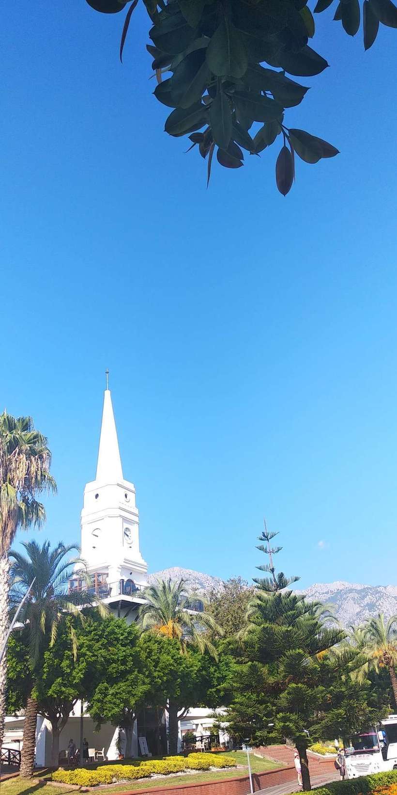 Возвращусь к тому как добраться. Нужно прийти в центр Кемера к Часовой башне (памятник еще там, фонтанчики), здесь находится остановка, вам нужно перейти на ту сторону, что на противоположной стороне и дождаться маршрутки на Чамьюву (они ходят каждые 20 минут) и на всякий случай уточнить «Фазелис Антик»?