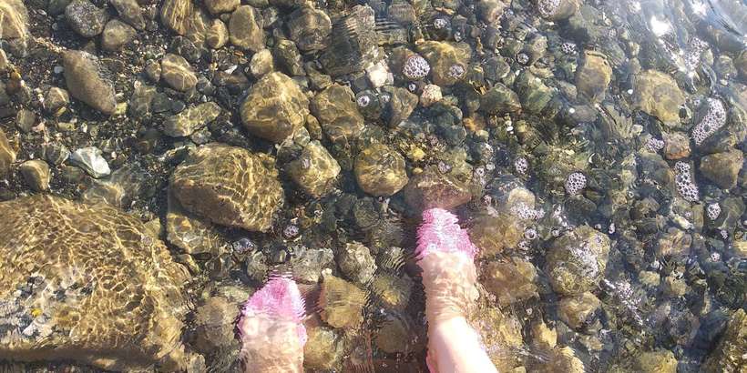 Мне здесь очень понравилось, за неделю дважды ездила! Тут можно побыть наедине с собой, сесть на камешек, ножки в воду и глядеть на горизонт или позагорать в одиночестве, без шума, гама и толпы.
