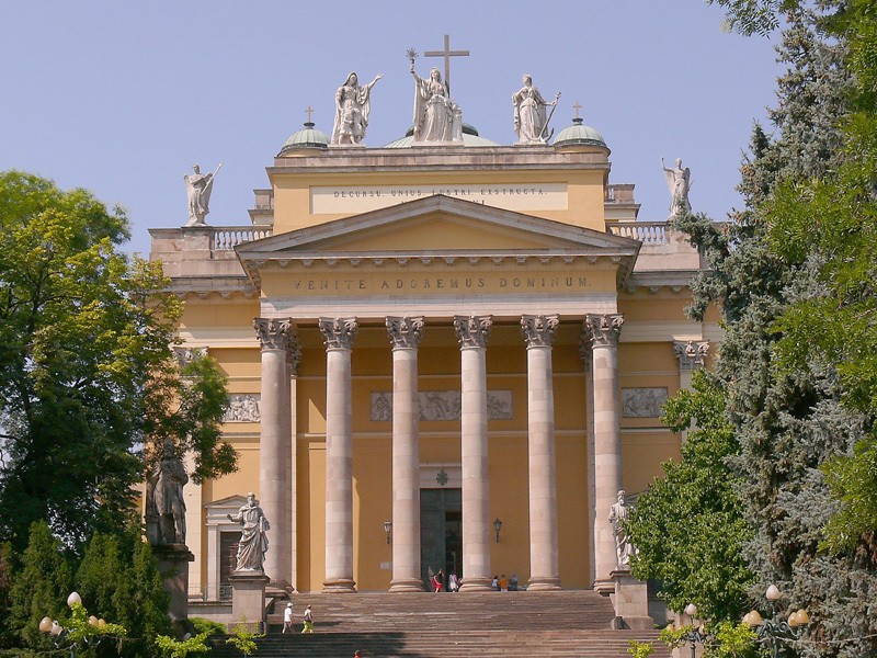 Что делать. Прибыв в город, не торопиться идти от автовокзала по кратчайшему пути. Иначе перед глазами предстанет западный фасад базилики, не такой красивый, как восточный, т.е. первое, самое важное впечатление, будет смазано. Мы попали к храму с правильной стороны, хотя без приключений не обошлось. Когда мы вышли на центральную площадь город, носящую имя военачальника Иштвана Добо, то решили, что внушительная церковь на ее южной стороне является собором. Это было достаточно большое здание, с двумя колокольнями, богато украшенное. Ошибку мы поняли только потом, когда увидели настоящий собор. Его размеры и оформление затмевали все остальные храмы, виденные нами в Венгрии. Только базилика в Эстергоме производит еще более сильное впечатление, так как стоит на холме. В Эгере собор также разместили на возвышенности, но небольшой. Это позволило сделать собор еще более внушительным.