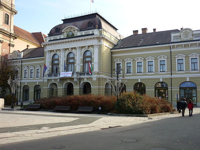 Площадь Иштвану Добо окружают красивые дома. Мы подошли к ней с севера, со стороны реки, и оглядывая местность, не могли не восхититься ее окружением. Я собирался уже назвать площадь гимном стилю барокко, но мы прошли вперед, в центр пространства еще немного, и справа показалось совершенно уродское здание универмага. Я удивился, кто надоумил его строителей взять за дело таким образом? Можно же было стилизовать новую постройку под старину и вписать ее в уже сложившийся барочный ансамбль. Это была серьезная ложка дегтя в бочку меда. Впечатление от площади было испорчено.