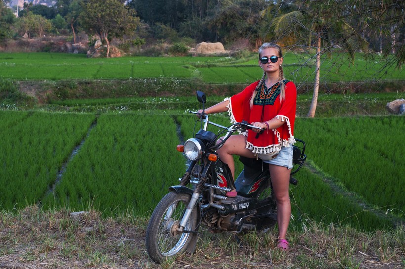 - Берите в аренду байк! Я остановились на мощной «стрекозе» за 150 рублей. Как же круто гнать вдоль рисковых террас, кокосовых пальм, многокилометровых каменных полей и по-настоящему кайфовать. Неудивительно, что мои десять дней в Хампи пролетели незаметно:)