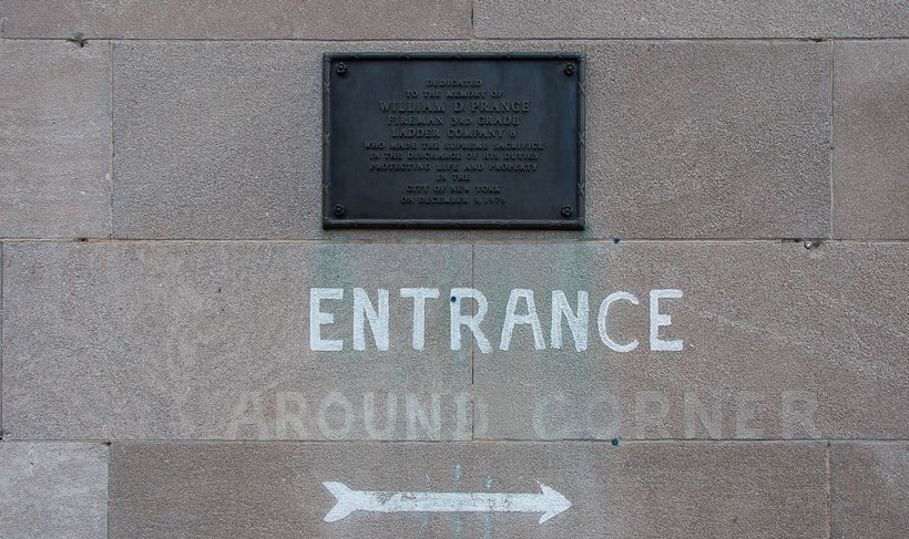 На здании висит табличка, которую я заметила еще в фильме - это памятная доска, посвященная одному из пожарных, работавших в той части - William D. Prange.