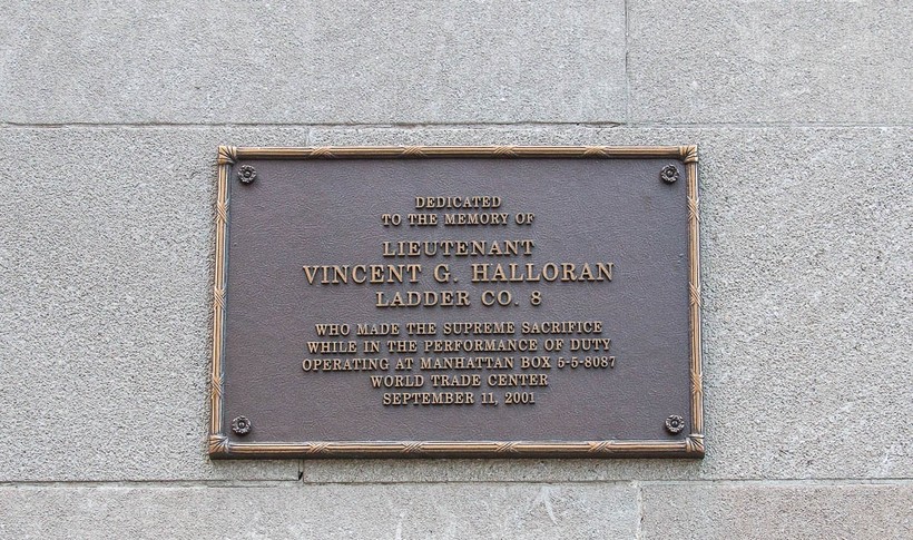 Слева я заметила ворота. Именно отсюда, если я все правильно помню, выезжал знаменитый автомобиль охотников за привидениями. А еще, на стене, с другой стороны ворот, я обнаружила еще одну мемориальную доску, которой раньше не было - это напоминание о том, что в этой части некогда служил настоящий герой Vincent G. Halloran, он погиб, работая на месте крушения башен-близнецов всемирного торгового центра 11 сентября 2001 года.