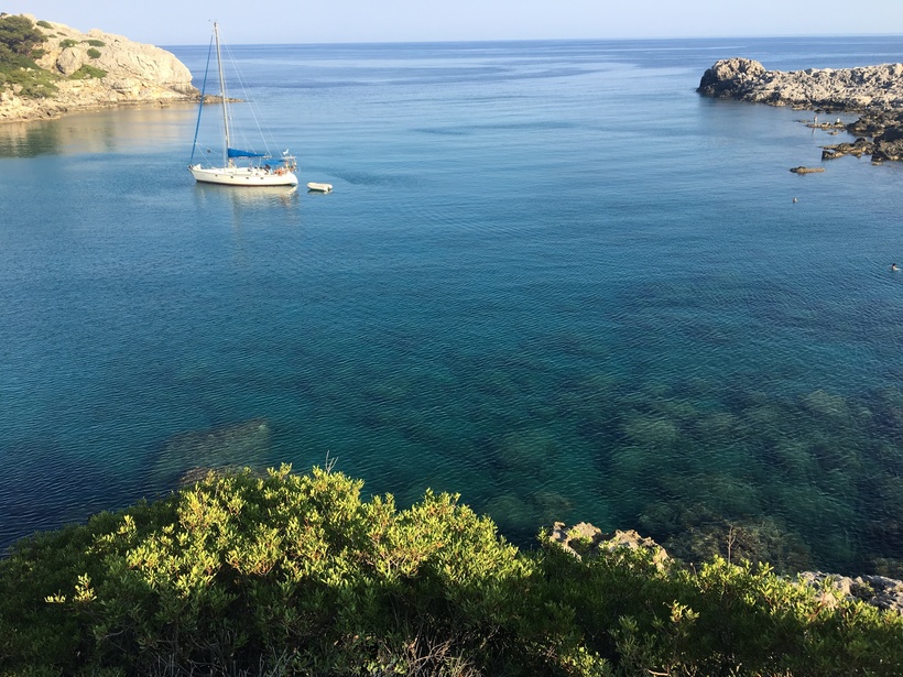 Бухта Энтони Куинна считается едва ли не самой популярной и туристической бухтой всего Родоса. Мы сначала не планировали ехать туда, так как уже видели очень красивую бухту Святого Павла в Линдосе и не менее классную бухту рядом с Калифея-Спрингс. А потом на остановке, пока мы ждали автобус, мы разговорились с другими путешественниками, они рассказали, как там здорово, и мы решили съездить.