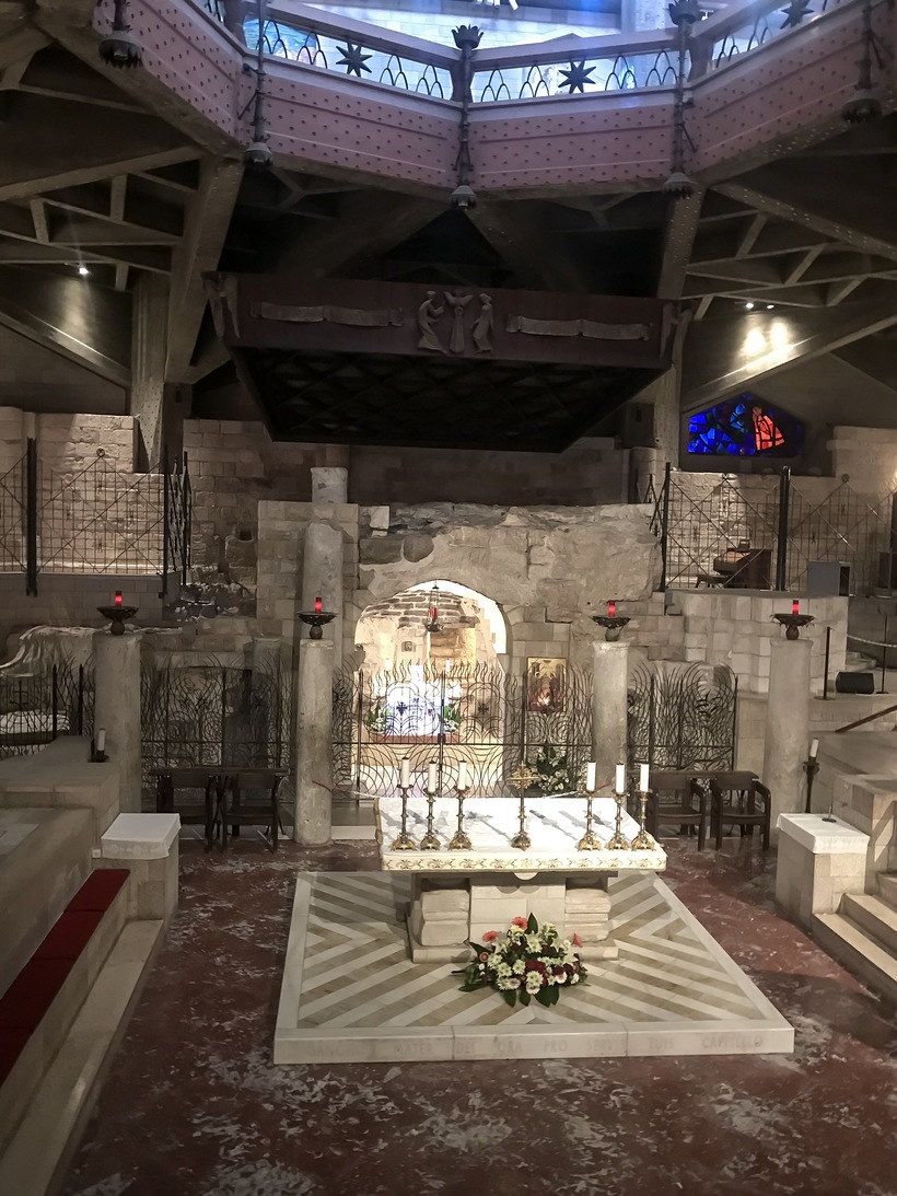 Так же на первом этаже вы найдёте остатки дома Святого Семейства с гротом. Считается, что именно в гроте юная Мария получила от Архангела Гавриила благую весть. "Радуйся, Благодатная! Господь с Тобою; благословенна Ты между женами". Мария смутилась от его слов, и Гавриил продолжал: " не бойся, Мария, ибо Ты обрела благодать у Бога; и вот, зачнешь во чреве, и родишь Сына, и наречешь Ему имя: Иисус. Он будет велик и наречется Сыном Всевышнего, и даст Ему Господь Бог престол Давида, отца Его".