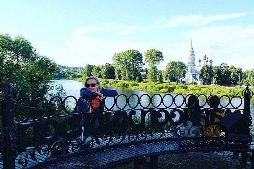 Правильно буква «О». И в этом я убедилась, встретившись с ней прямо в сердце Вологды у Вологодского Кремля в скверике Соборной Горки недалеко от пристани реки Вологды . Девушка она стройная, высокая метра 2,5, поэтому сразу бросается в глаза, и даже можно сказать гордая, 300 кг веса точно никак не получиться сдвинуть с места. И еще к тому же очень красивая и имеет свой шарм благодаря традиционным классическим северным узорам.