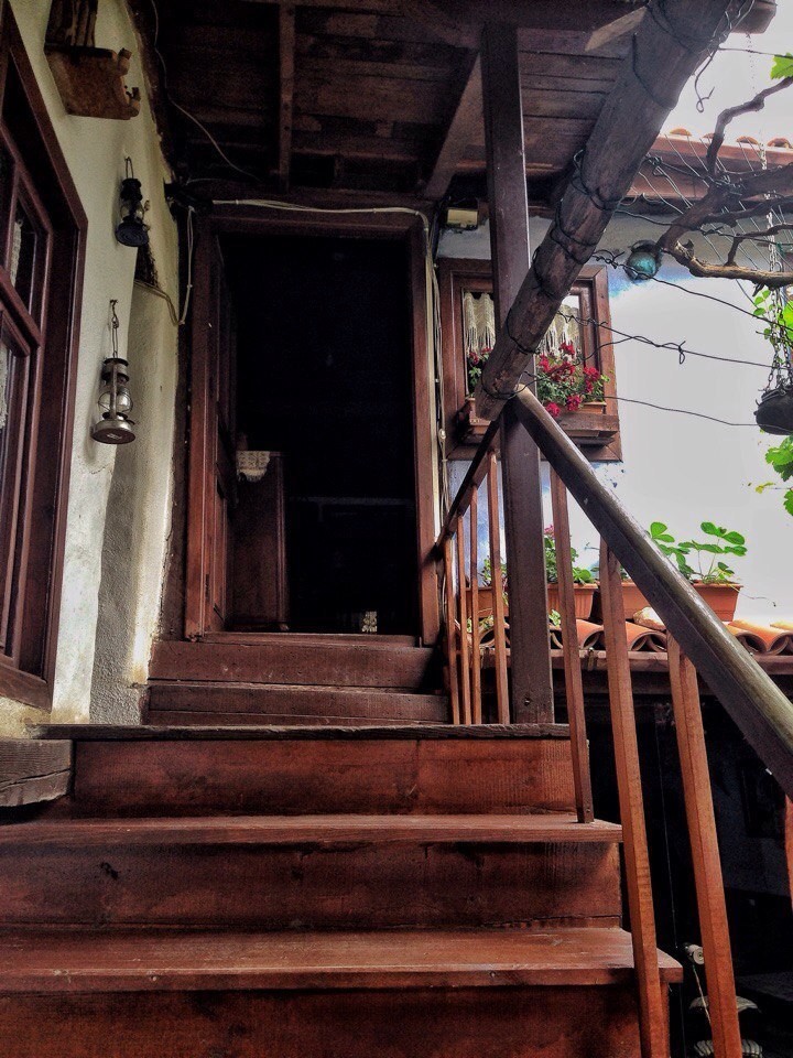 Согласно османскому стилю дома имеют 2 или 3 этажа. Чтобы осмотреть внутреннее убранство я зашла в один дом-музей, наполненный утварью прошлых веков. Найти его легко - нужно свернуть на лево с главной площади, рядом со входом во двор музея красуется соответствующая табличка. Стоимость посещения всего 3 лиры.