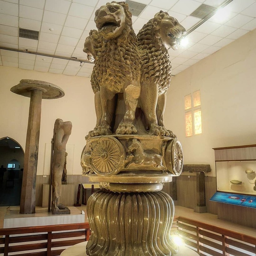 В разных галереях расположены находки, посвященные буддийской традиции, и связанные с историей индуизма. А также много фрагментов древних сооружений. Как только попадаешь в музей, оказываешься в зале с крупными экспонатами в виде части той самой колонны Ашоки, верхушки огромного каменного "зонтика", а также множества каменных статуй. В этом зале дежурные тщательно бдят, чтобы туристы не подходили слишком близко к обьектам во время фотографирования, и могут вежливо сделать предупреждение. Фотографий я там сделала много и смотрелось это все очень колоритно, так что тоже обязательно фотографируйте в этом зале!