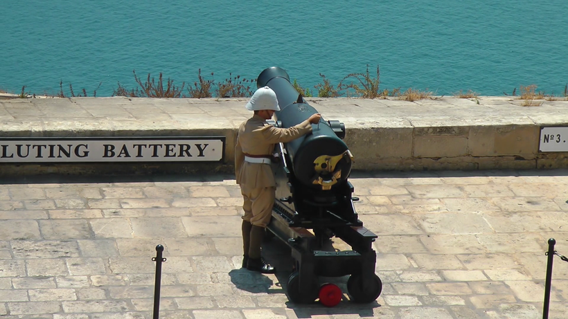 Салютная батарея на Мальте стреляет каждый день, начиная с 12.00, производится один выстрел, и в 16.00 выстрелы из всех орудий. Вот их-то мы и слышали, они-то нам и попались. Честно говоря, это впечатляет, потому что ты ничего такого не ожидаешь. Я, наверное, даже рада тому, что не прочитала об этом заранее. Ты смотришь задумчиво со стены одного форта на стены укрепленного древнего города, и оттуда начинают палить пушки, там вспыхивает пламя, дым летит, и ты реально проваливаешься сквозь время, ощущаешь себя в той реальности, лет так 200 назад. И у тебя совершенно потрясающее впечатление от этого.