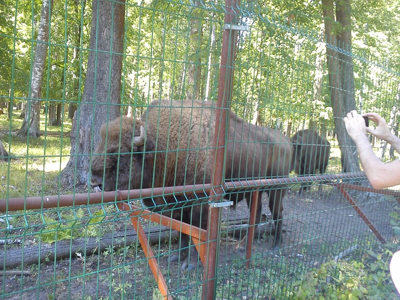 - Зубровый питомник и музей природы. Идут как один пункт, так как посетить их можно только с гидом (ибо заповедник) и только вместе. Музей небольшой, но информативный, а в питомнике у зубров места явно больше, чем в вольерах белорусской части Беловежской пущи. Помимо зубров, там есть и бизоны, и нам объяснили, в чем разница. Цена вопроса — 400 рублей.