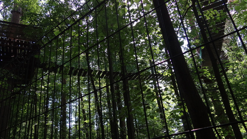 - Экотропу "Сквозь листву". Это занятный аттракцион, где надо перемещаться по подвесным мостикам между площадками, расположенными на уровне крон деревьев. На площадках размещены всякие интересные и познавательные инсталляции. Цена вопроса — 300 рублей.