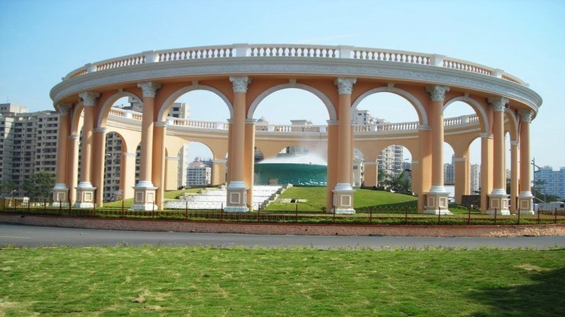 Современный Мумбаи мне не особо нравится, типичные коробки-многоэтажки в спальных микрорайонах и ничего особо интересного. В одном из таких районов - Нави Мумбаи- как раз пришлось побывать. Мы ездили на машине со знакомыми по делам и на развилке дорог есть весьма неожиданная конструкция в виде круговой колоннады. Это строение называется Utsav Chowk - местные в восторге от красоты сооружения. Мои же впечатления были весьма скромные. По сути в этой колоннаде нет ничего особенного, вот стиль - необычный для Индии, наверно потому он и нравится индийцам, так как кажется экзотичным.