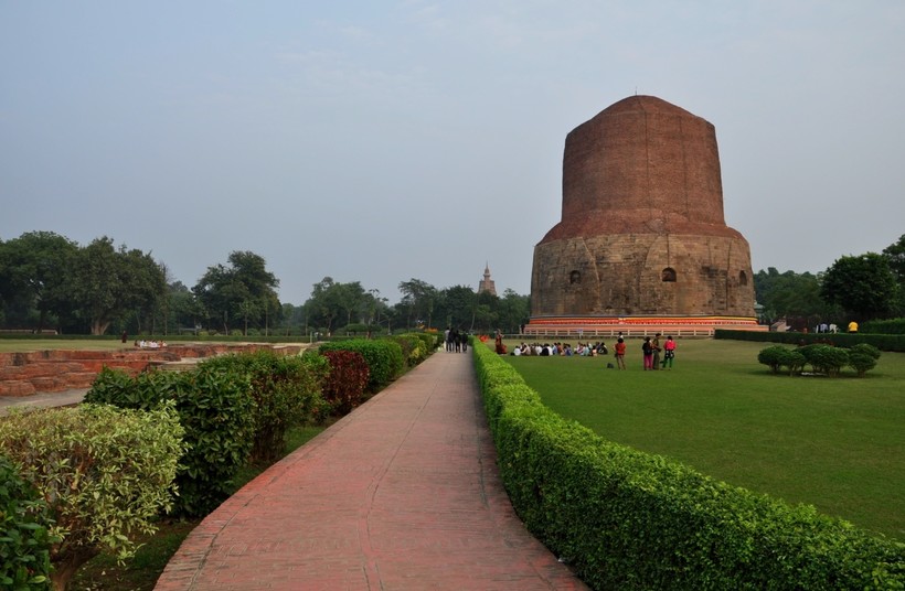 Около ступы почти всегда очень много буддийских паломников, а как иначе, это ведь место первой проповеди Будды Шакьямуни после его "просветления", когда он учил 5-х своих первых учеников. Поэтому у индийцев это место считается священным. Была построена примерно в 500 годах нашей эры на месте развалин времен короля Ашоки.