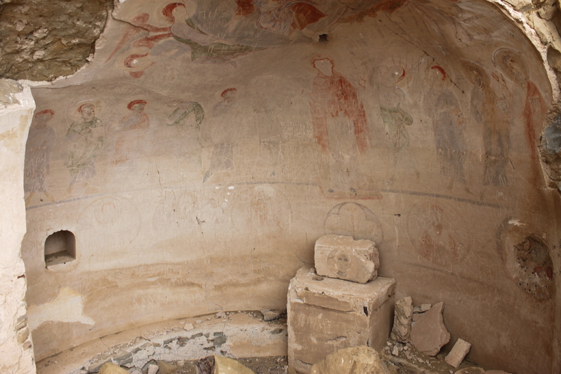 Но наибольший интерес здесь, конечно представляют старые каменные кельи, и похоже даже храмы, стены которых расписаны сверху донизу. Их здесь больше 50 и все они выбиты в скале.
