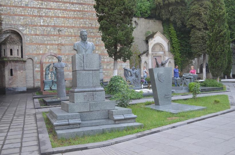 И до этого в стоявшей на склоне горы церкви святого Давида хоронили людей, но делали это от случая к случаю. Устройство могил стало целенаправленным после 1929 года. Кладбище Мтацминды превратилась в настоящий грузинский пантеон. На нём захоронены такие яркие личности, как режиссёр Михаил Чаурели, писатель Нодар Думбадзе, артист балета Вахтанг Чабукиани. Среди людей, которые преумножили славу Грузии, почему-то затесались те, кому, на мой взгляд, не по чину там лежать. И если Екатерина Геладзе, мать Сталина, всё-таки имеет отношение к элите, то что делает в пантеоне Звиад Гамсахурдия, устроивший в стране гражданскую войну и проигравший всё, что только можно, мне непонятно.