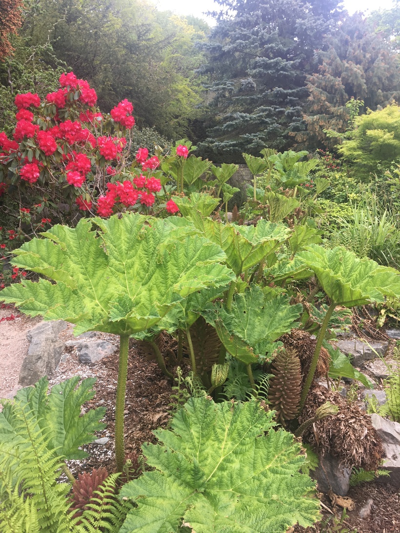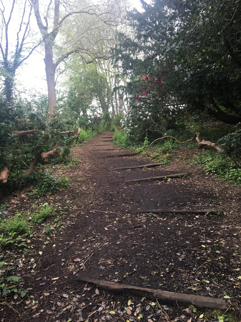 Сложно представить сколько ландшафтных дизайнеров работают в этих садах. Я не ожидала такого их количества и разнообразия. Вокруг дома в основном вечнозелёные кустарники, подстриженные и высаженные в самых разнообразных фигурах. Дальше террасы поднимаются вверх с цветущими садами. Я пошла по тропинке и нашла множество кустов рододендронов и азалий. Тут были и незнакомые мне растения. Сады были очень большие.
