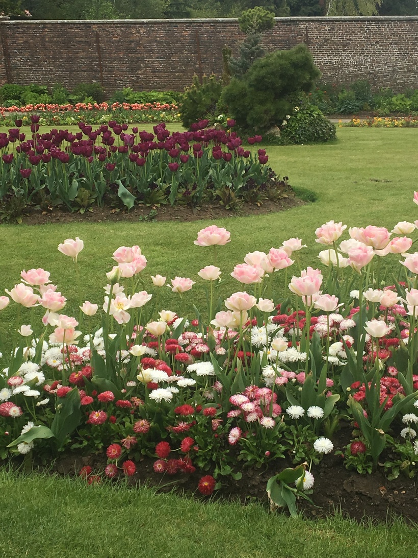Видимо эти сады были закрыты долгое время для посетителей, да и сейчас вход в них только с одной стороны. Я сначала вышла в цветочный сад, где цвели тюльпаны. Клумбы были повсюду, а количество разнообразных видов этих цветов я даже не смогла сосчитать.