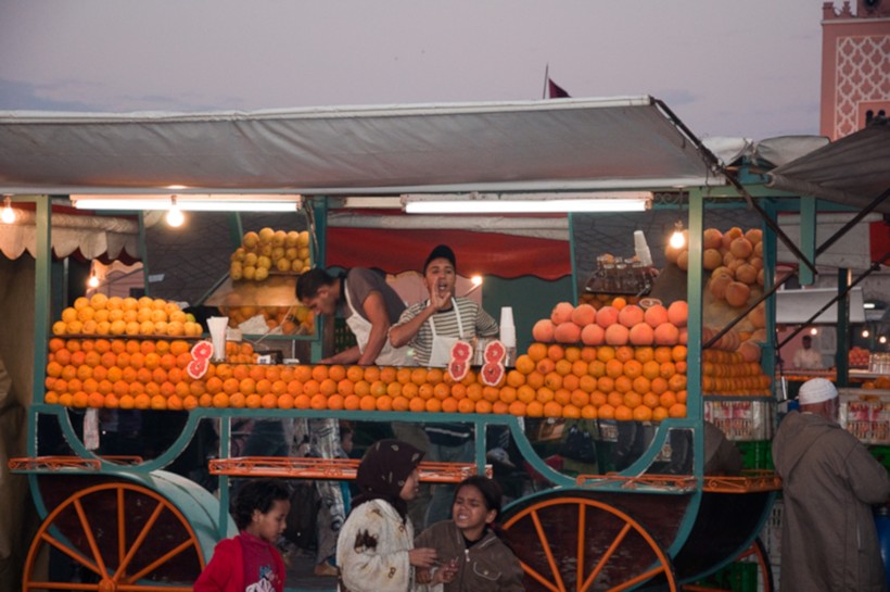 Во всех путеводителях вам начнут «заливать», что в Марокко самый вкусный мандариновый сок. Нет там никаких мандаринов. Вернее, есть на деревьях и они совершенно не вкусные. Даже в одном популярном шоу про путешествия этот сок пытались найти. Я тоже не «рыжий» и приехала попить мандариновый сок. Везде вам дадут апельсиновый, но будут говорить, что он из мандаринов. Не верьте. Но пробуйте! Обязательно пробуйте. Апельсиновый сок у них чумовой просто. И стоит копейки!