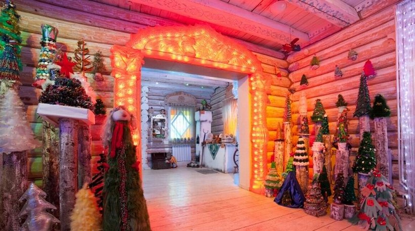 Здесь, в отдельной комнате, представлена выставка елок, которые выполнены из самых неожиданных материалов, к примеру, макарон и вторсырья.