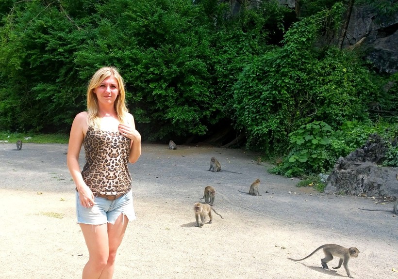 Wat Suwan Khuha также называют храмом тысячи обезьян. Наверное, не сложно догадаться, что это связано с большим количеством обезьянок, которых можно увидеть как в самом храме, так и на горе. Здесь обитают десятки, а может даже сотни обезьян. Мы кормили их с рук, и это было действительно очень увлекательным занятием! А еще мы были очень довольны тем, что запаслись достаточно большим количеством корма, потому как оказалось, что желающие полакомиться могут слопать за один раз значительно больше, чем мы могли себе представить.