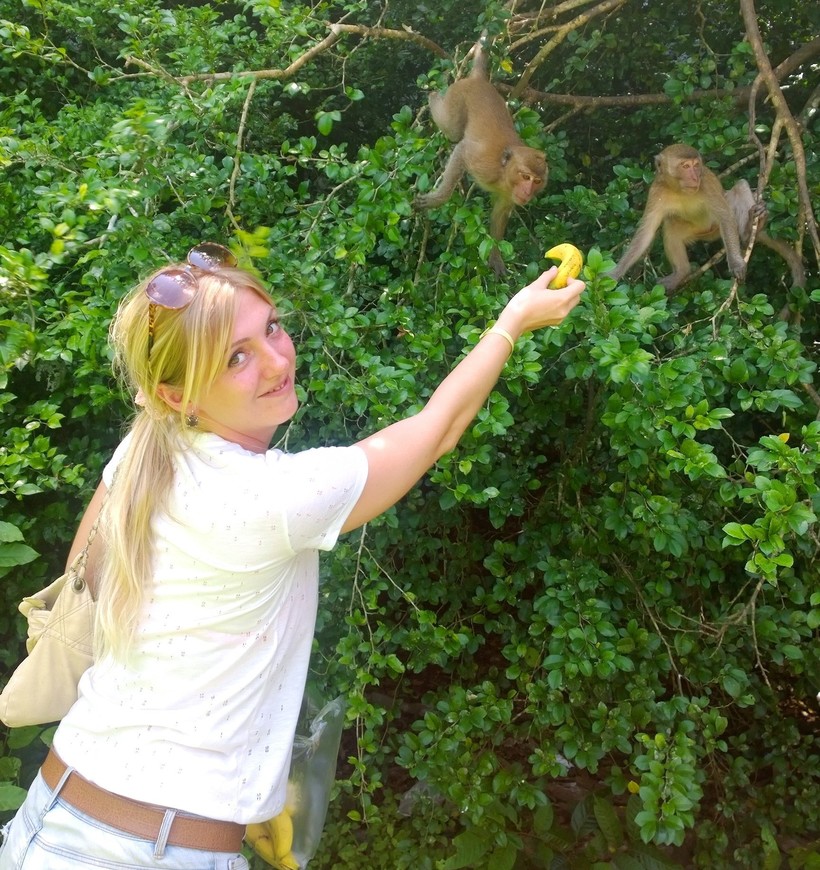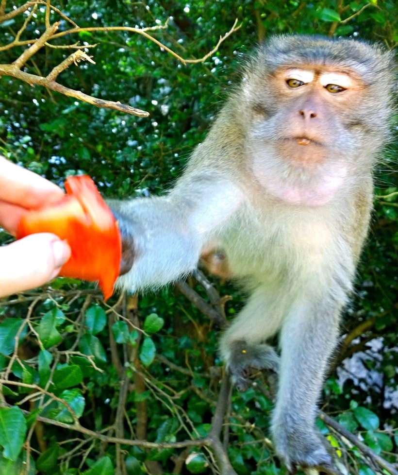 Периодически к нам подходили несколько назойливые торговцы, предлагавшие купить у них корм для обезьянок. И если вы все же хотите их покормить, лучше запастись фруктами заранее. Это будет значительно дешевле. Можно взять, например, пару связок бананов или больших и недорогих папайя. Не берите для этих целей орешки. Они очень мелкие и обезьянки могут вас случайно поранить своими острыми коготками.