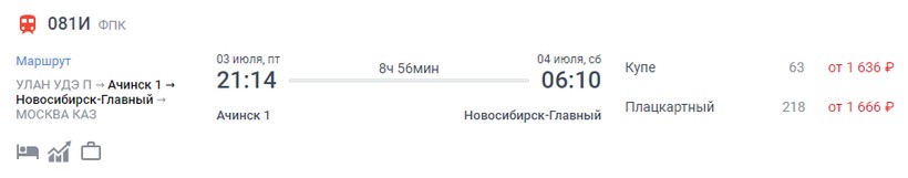 Актуальные цены и расписание поезда Ачинск — Новосибирск, стоимость и информация о наличии билетов на скорые поезда АО «ФПК».
