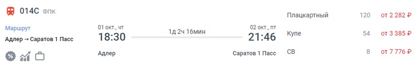 Актуальные цены и расписание поезда Адлер — Саратов, стоимость и информация о наличии билетов на пассажирские и скорые поезда АО «ФПК».