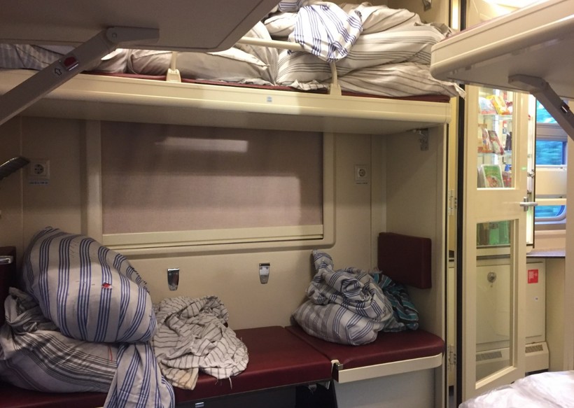 Поездка проходит в комфортных условиях. Вагоны новые, оборудованы вакуумными туалетами, кондиционерами. Обслуживание качественное, персонал вежливый к пассажирам, часто проводят влажную уборку, моют санузлы (минимум 2 раза за поездку). Есть плацкартные, купейные вагоны. Планировка стандартная — полки, столики между ними. Розетки установлены почти у каждого места. Большой плюс — в купе есть специальные места для людей с ограниченными физическими возможностями. Питание не входит в стоимость, не забудьте прихватить в дорогу что-то съедобное. У проводников можно приобрести кондитерские изделия, кофе/чай. Тем, кто захочет взять с собой домашнее животное, придется ехать в купе (в плацкартных вагонах эта услуга отсутствует). Состав курсирует по четным датам. Выезжает после обеда (в 15:53), прибытие запланировано через 18 часов 43 минуты — в 10:36.