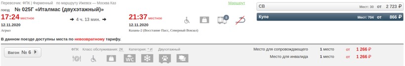 купе — 866 рублей;