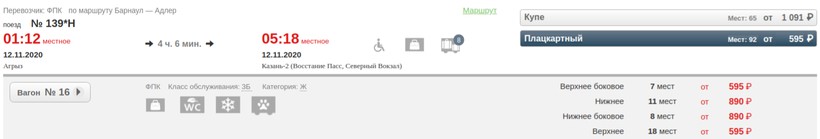 поезде имеются плацкартные вагоны (950