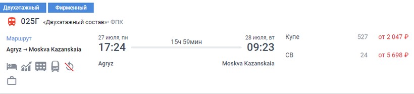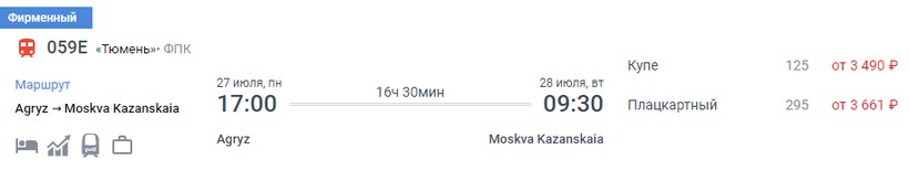 стоит 3661 ₽, а в купе — от 3490 ₽.