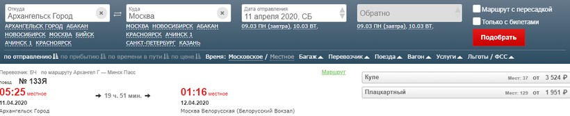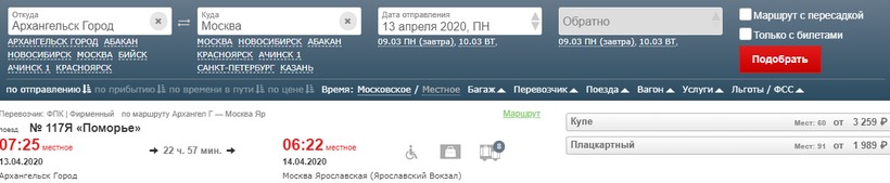Актуальные расписание поездов Архангельск — Москва, стоимость жд билетов и информация о наличии билетов на скорые и скорые фирменные поезда АО «ФПК».