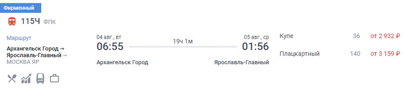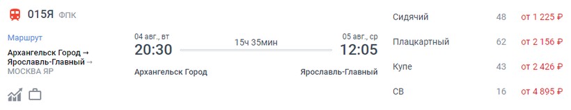 Актуальные цены и расписание поезда Архангельск — Ярославль, стоимость и информация о наличии билетов на скорые и скорые фирменные поезда АО «ФПК».