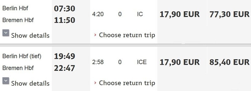 Как я говорила, к Бремену идет только 2 прямых состава ежедневно: