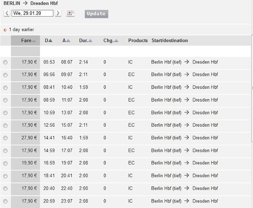 Актуальные цены и расписание поезда Берлин — Дрезден, стоимость и информация о наличии билетов на поезда CD.