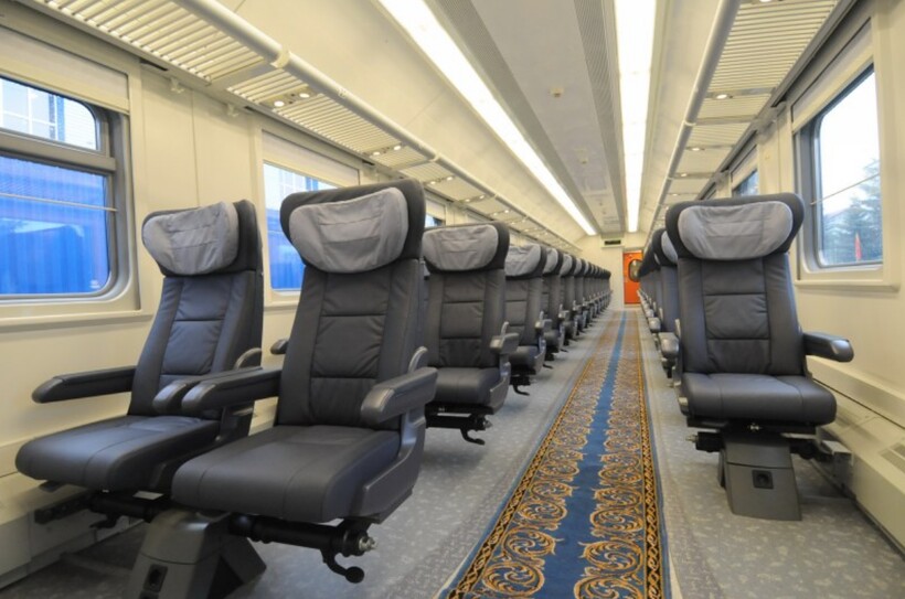 Состав новый, вагоны современные. Внутри чистота и порядок, аккуратно, нет посторонних запахов. Проводники хорошо выполняют свою работу, к пассажирам относятся вежливо, помогают, приносят кофе, чай и различные перекусы. Вагоны стандартные. В купе есть 4 места (можно выбирать женские/мужские купе), в плацкарте — 9 открытых отсеков с полками (нижние, верхние, боковые). В вагоне с местами для сидения удобные кресла с подлокотниками, места для ног хватает.