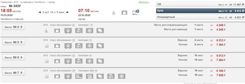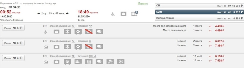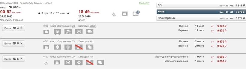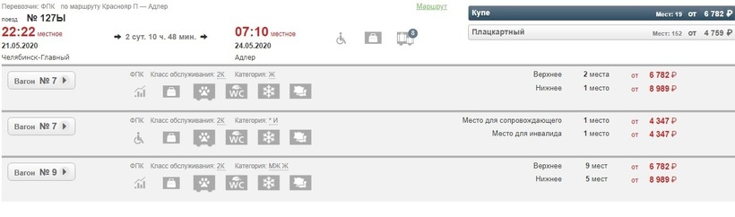 Скорый поезд выходит из Челябинска в 22:22 и приходит в Адлер в 07:10. Идет по понедельникам, четвергам и субботам, а с конца мая до начала сентября — и по средам. В пути 2 суток 10 час. 48 мин. и 49 стоянок, самые долгие: Самара — 45 мин. и Краснодар — 49 мин. Удобно уехать в ночь, после работы и учебы, а на юге быть утром, перед началом трудового дня. В составе только плацкартные и купейные вагоны. Они оснащены кондиционерами и биотуалетами, возможен проезд с животными, для путешествия с крупной собакой необходимо выкупить все купе. Из удобств отмечу наличие розеток 220В, USB-портов и Wi-Fi (не всегда подключается). В купе предусмотрены места для лиц с инвалидностью. Постельное белье входит в стоимость, при размещении учитывается пол пассажиров.