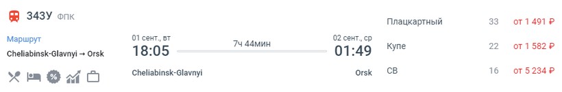 Актуальные цены и расписание поезда Челябинск — Орск, стоимость и информация о наличии билетов на пассажирские и скорые поезда АО «ФПК».