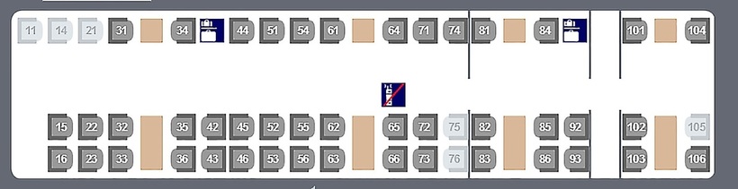 Возле каждого сиденья имеются розетки, а Wi-Fi предоставляется бесплатно.