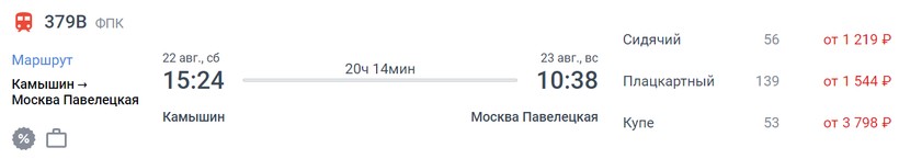 Актуальные цены и расписание поезда Камышин — Москва, стоимость и информация о наличии билетов на пассажирские поезда АО «ФПК».