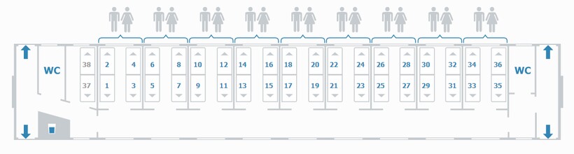 Все новые и чистые, оснащены биотуалетами со всем необходимым, кондиционерами, розетками (возле каждой полки), USB.