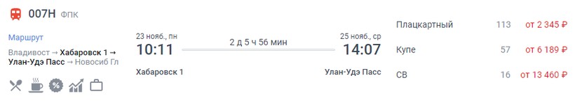 Актуальные цены и расписание поезда Хабаровск — Улан-Удэ, стоимость и информация о наличии билетов на скорые поезда АО «ФПК».