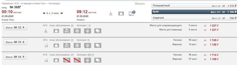 Актуальные расписание поездов Киров, Кировская область — Ижевск, стоимость жд билетов и информация о наличии билетов на скорые поезда АО «ФПК».