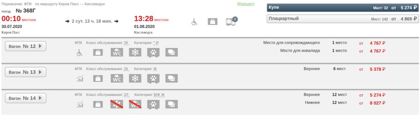 Актуальные цены и расписание поезда Киров, Кировская область — Кисловодск, стоимость и информация о наличии билетов на пассажирские и скорые поезда АО «ФПК».