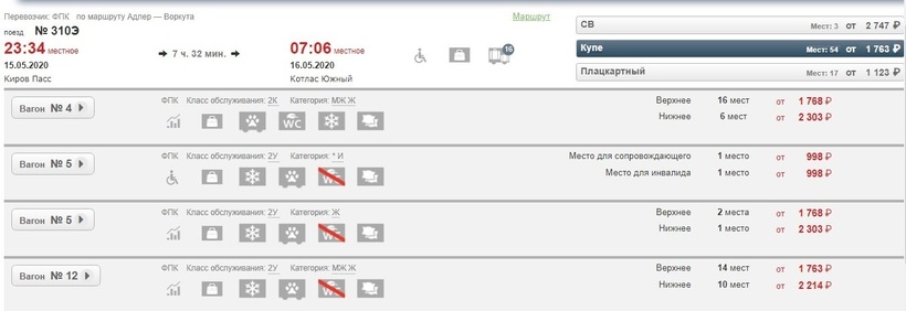 В составе плацкартные, купейные и спальные вагоны. Все оснащены кондиционерами. Биотуалеты предусмотрены только в плацкарте. В некоторых купированных имеются места для лиц с инвалидностью. Возможен провоз животных, для компании с крупной собакой необходимо выкупить купе. В плацкарте можно провозить мелких питомцев (за отдельную плату). Обслуживание хорошее, персонал вежливый, отзывчивый и доброжелательный. Вагоны бывают не новые, но чистые и теплые. Влажная уборка проводится регулярно. Советую взять что-то для перекуса, чай, кофе, сахар — в поезде все дорого. Цена билета зависит от типа вагона и срока покупки. За неделю до отъезда стоимость будет примерно такой: